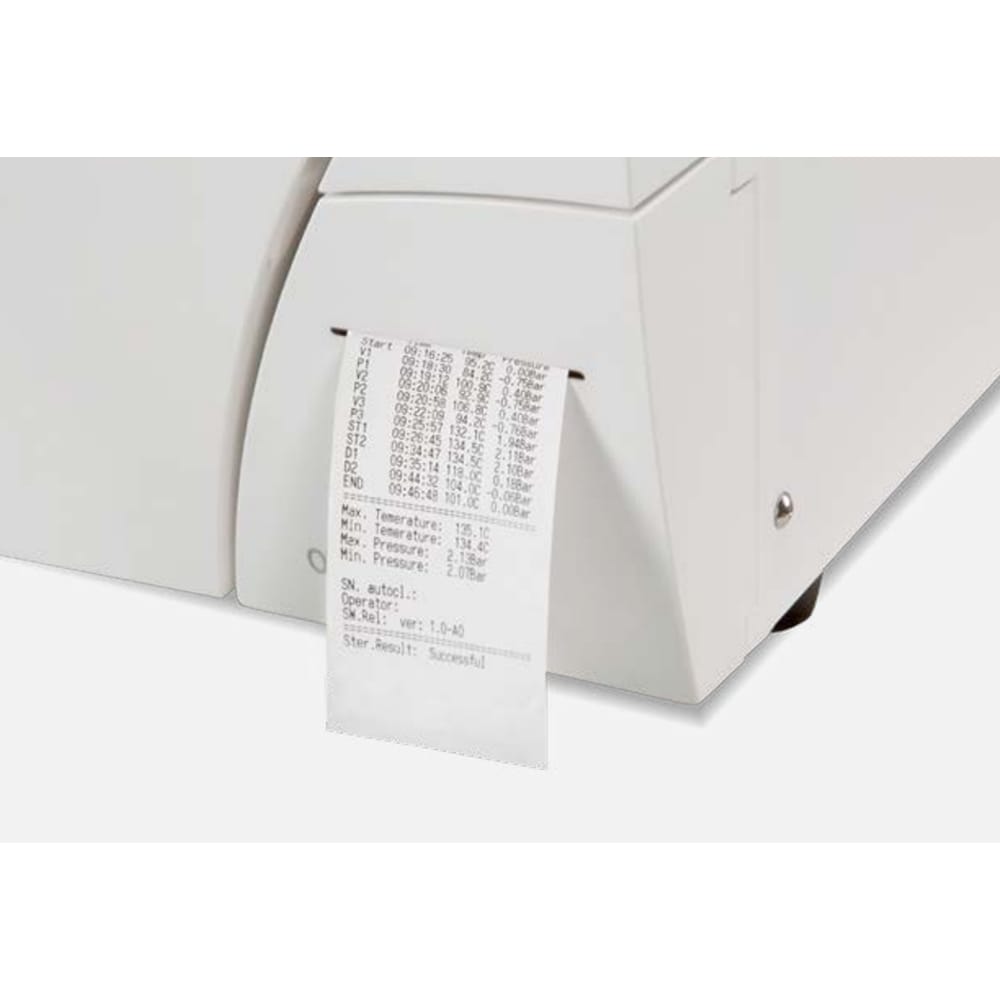 Pentru generarea rapida a rapoartelor privind ciclurile de sterilizare si programele de testare, autoclavul este prevazut cu imprimanta integrata.