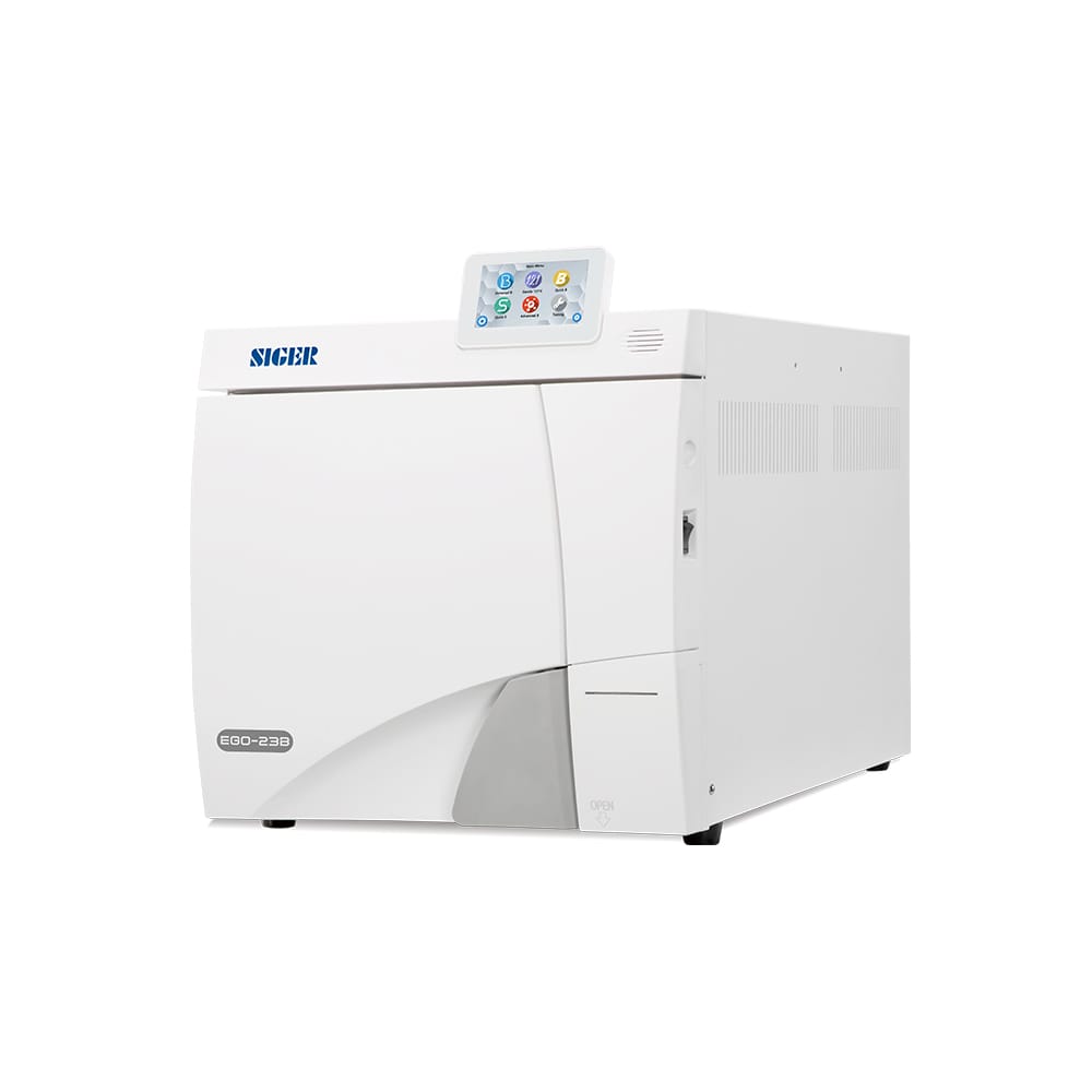 Autoclavul EGO 23B produs de Siger este un autoclav clasa B modern, cu un volum al camerei de sterilizare de 23 litri. Echipat cu un sistem inovativ de separare aer-apa, pompa de vacuum Thomas si electrovalva realizata in Italia, propune o eficienta sporita in procesul de sterilizare.