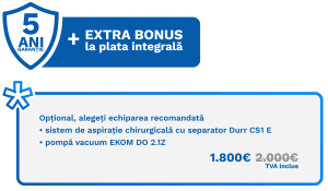 - sistem de aspiratie Venturi (cu canula de aspiratie chirurgicala și aspirator de saliva, pe masa asistentei)